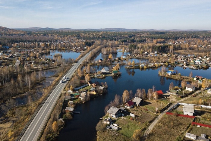 К некоторым дачным поселкам посреди реки проложили автомобильную дорогу («Уральская Венеция», Нижний Тагил). | Фото: mobillegends.net.