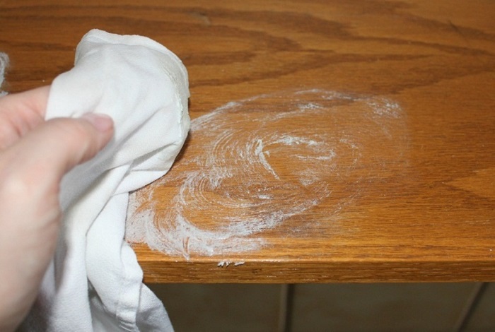 Намажьте майонезом поверхность стола и протрите тряпкой. / Фото: severdv.ru