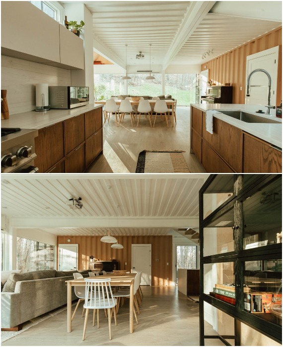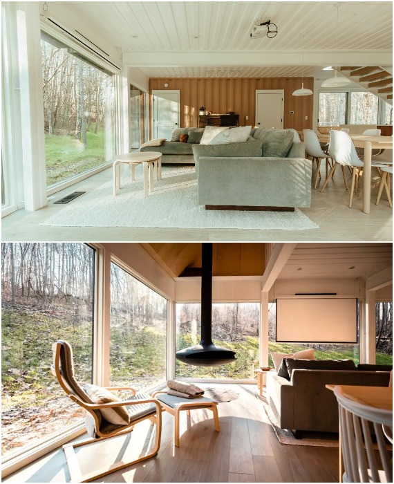Открытая планировка и панорамное остекление сделало жилое пространство более воздушным и объемным (The Hygge Box Hop, США).