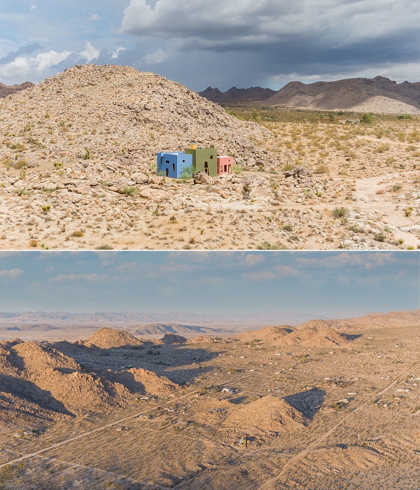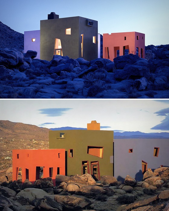 Причиной такой популярности стала его форма и цвет, которые никто не ожидал увидеть среди сурового ландшафта пустыни Калифорнии. Авторы Novate.ru хотели бы отметить, что три прямоугольных структуры с перемежающимися окнами и дверными проемами разного размера и геометрической формы, окрашенные в разные цвета, действительно поражают воображение, особенно, если их видит неподготовленный путешественник. Путешествуя по каменистым просторам пустыни, неудивительно, что у любителей суровой экзотики возникает мысль, может ли такая композиция быть жилым домом. Или это причудливый мираж?