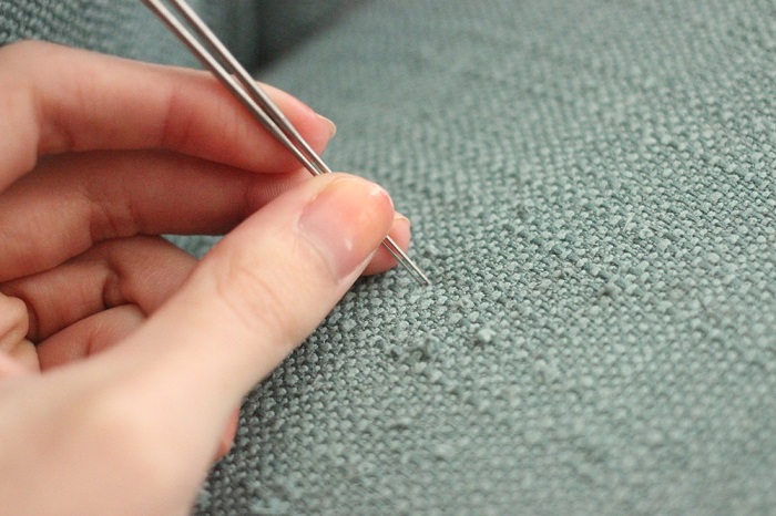 Владельцы кошек, скорее всего, прекрасно знакомы с затяжками, которые они оставляют на мягкой мебели, когда точат когти. Страдает все: диван, кресла, стулья с мягкими сиденьями, изголовье кровати и пр. Затяжки портят внешний вид изделий, а потому их нужно своевременно убирать. Срезать ни в коем случае нельзя. Лучше воспользоваться тонкой иглой, которую вы обычно используете для шитья или вышивания, и аккуратно вытянуть затяжку на изнаночную сторону. Вуаля – ее будто и не было на этом месте!