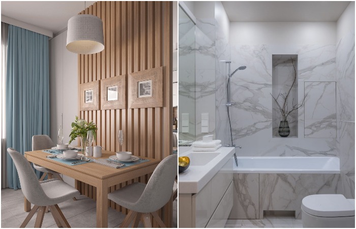 Дерево и мрамор прекрасно смотрятся в интерьере