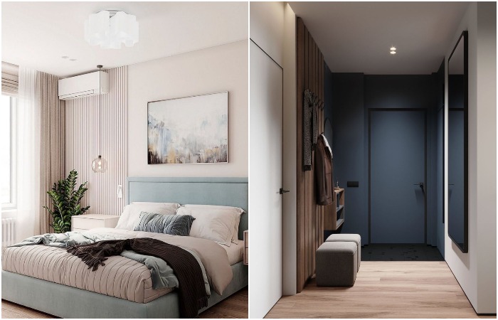 Для спальни подходят пастельные оттенки, а для прихожей - насыщенные и глубокие