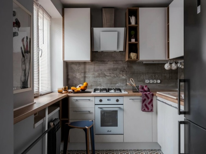 Пример удачного интерьера очень маленькой кухни. / Фото: dg-home.ru