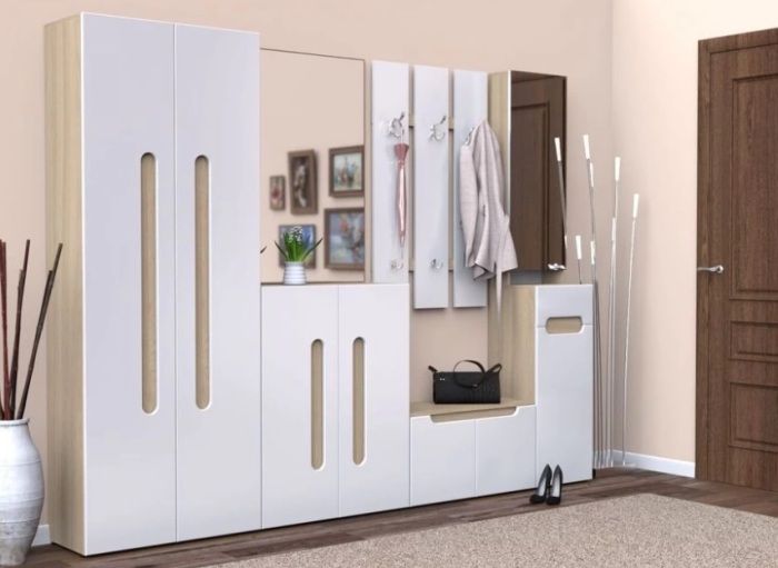 Для размещения мебели в прихожей необходимо правильно распланировать пространство. Есть следующие варианты: • Ниша. В случае наличия небольшой ниши, без сомнения рассматривайте её в качестве зоны для хранения вещей. Маленькая гардеробная, оборудованная в нише прихожей, существенно сэкономит финансы и пространство дома. При оборудовании такого гардероба не пропадет ни один квадратный метр небольшой прихожей. • Вдоль стены. Расположение шкафа вдоль стены имеет свои нюансы. Наиболее удачным является использование самой длинной из стен прихожей. В таком шкафу будет возможность организовать множество зон для хранения вещей, что делает его оптимальным по габаритам и очень функциональным. Установка такого шкафа-купе вдоль стены используется в узких коридорах небольших квартир.