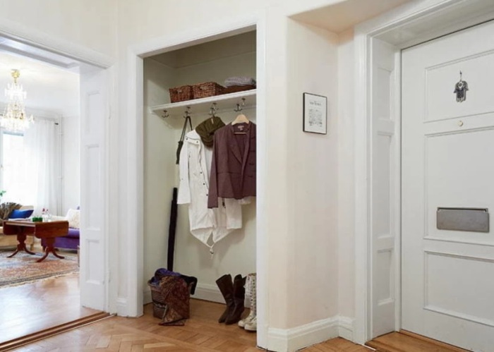 Меблировка любой из комнат дома очень важна для комфортного ежедневного времяпровождения. Однако, в случае пространства прихожей этот момент имеет приоритетное значение. Неуместно поставленный шкаф-гардеробная не способен быть функциональным, так как будет разочаровывать своих владельцев даже в нюансах. Обратите внимание на следующие аспекты: • Расположение гардероба на большом удалении от входной двери будет способствовать захламлению остального пространства прихожей. • Отсутствие пуфа для комфортной смены обуви провоцирует владельцев совершать ритуал в более приспособленном месте, а значит пыль и грязь с улицы распространится по остальной части квартиры. • Не забывайте об обязательном наличии зеркала вблизи шкафа с одеждой. Это не просто удобно, но и необходимо для комфорта в ежедневных процедурах. • Уделите внимание качеству напольного покрытия непосредственно в зоне гардеробной, чтобы смена обуви с домашней на уличную и наоборот не оставляла следов и повреждений на поверхности. • Без достаточного освещения в зоне гардеробной тоже никак не обойтись. • Помните о гостевых элементах для кратковременного хранения одежды, иначе вам придется располагать её среди собственной. • Небольшие открытые полки также придутся кстати для сумочки, перчаток и ключей. • Если есть возможность, обеспечьте достаточную вентиляцию помещения или воспользуйтесь нашими советами по устранению запахов в шкафу. • При необходимости предусмотрите держатели предметов для бытовых нужд: уборки, глажки, хранение велосипедов, лыж, коньков.