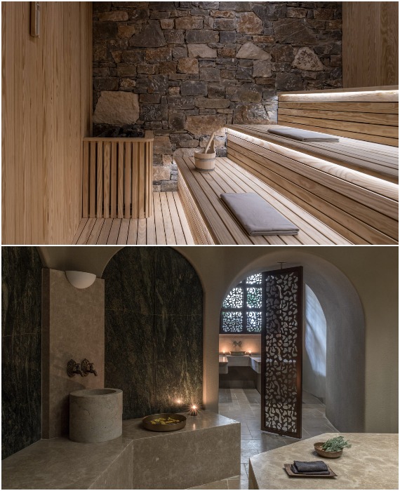 Колоритный интерьер СПА-центра Bath House, в недавно открывшемся курортном комплексе (Acro Suites, Греция).