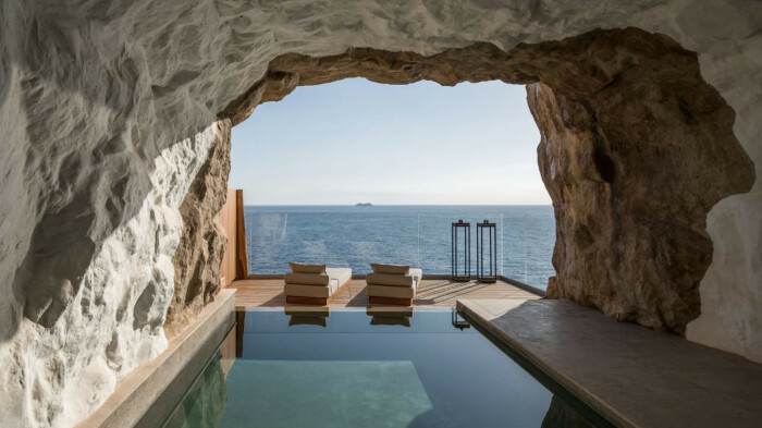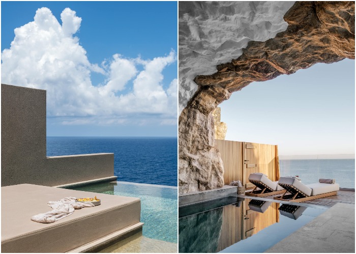 С помощью бетона удалось повторить фактуру скалистого берега, благодаря чему архитектурный объект стал естественным продолжением природного ландшафта (Acro Suites, остров Крит). | Фото: thespaces.com.
