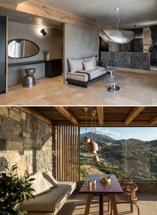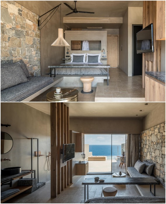 Несмотря на кажущуюся простоту, номера Acro Suites оформлены с использованием качественных природных материалов, которые помогли создать особую атмосферу (остров Крит, Греция).
