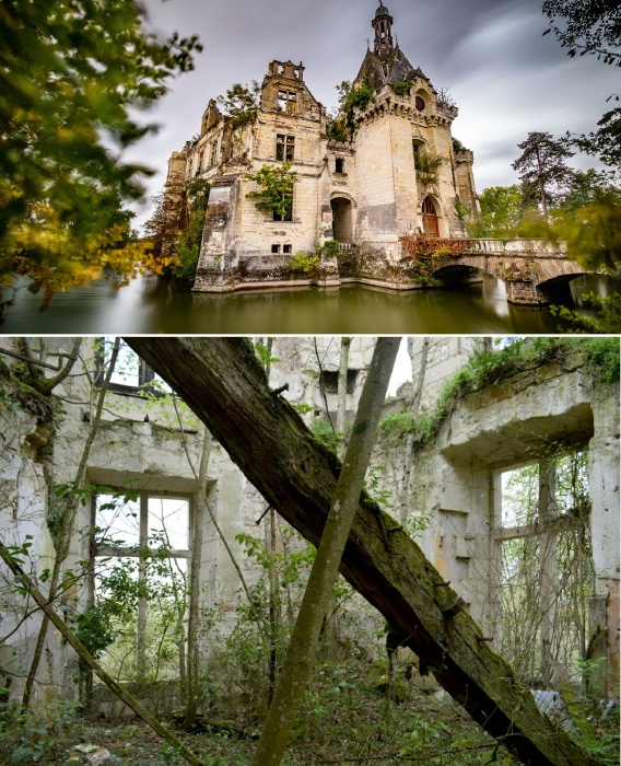 Несколько десятилетий замок Chateau de la Mothe Chandeniers осваивали лишь животные, птицы и растительность (коммуна Ле-Труа-Мутье, Франция).