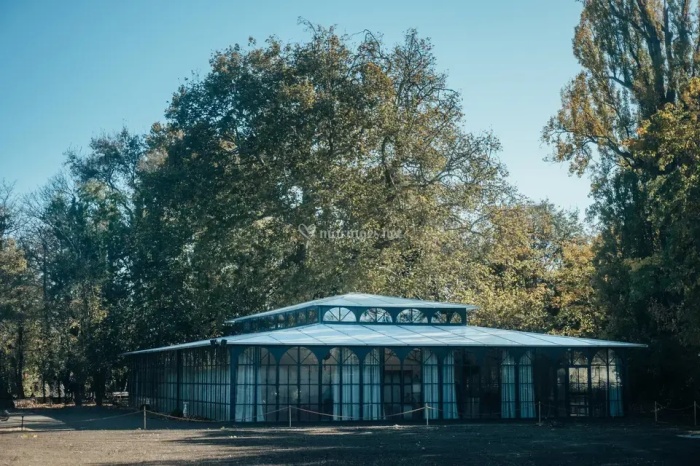 Павильон-оранжерея вмещает до 300 гостей, только угощения нужно привозить с собой (La Mothe-Chandeniers, Франция).