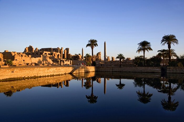 Возле храма Рамзеса II находится священное озеро Биркет-эль-Маллаха, вода в котором слегка соленая (Karnak Temple, Египет). | Фото: khanacademy.org.