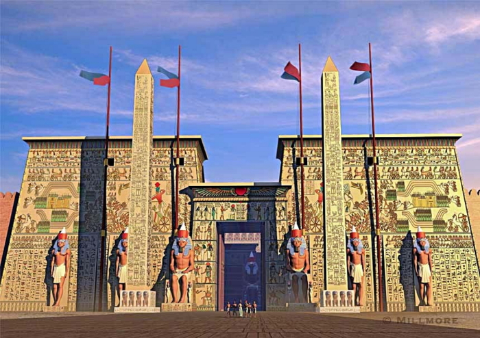 Цифровая реконструкция Главного пилона Karnak Temple, построенного в IV веке до нашей эры. | Фото: cutewallpaper.org.