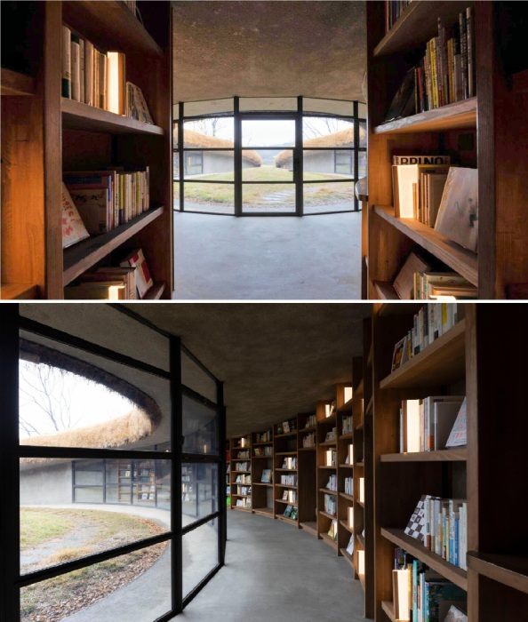 «Подземную библиотеку», можно найти под холмами, щедро покрытыми травой (Kurkku Fields, Япония).