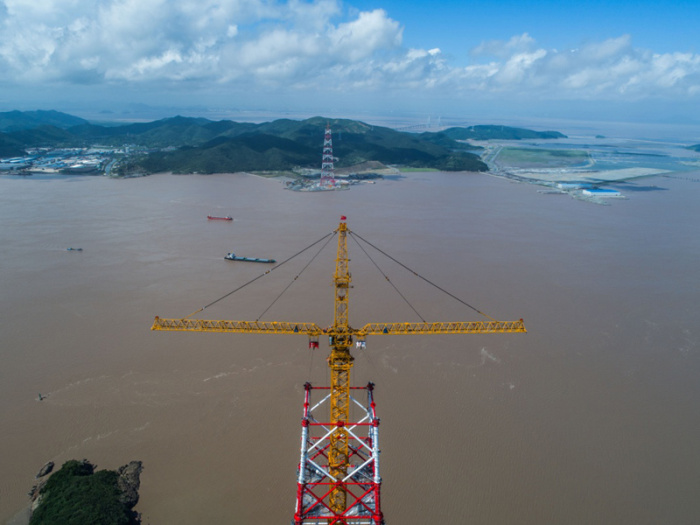 Строительство 380-метровой опоры. |Фото: china.org.cn.