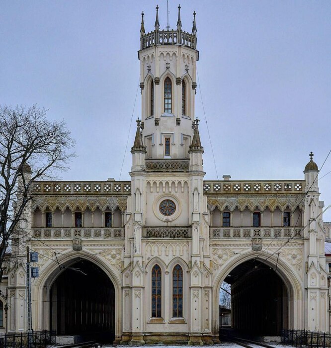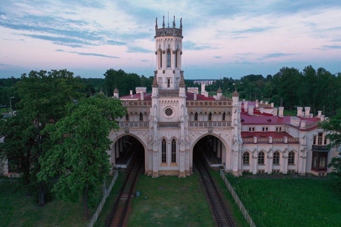 Железнодорожный вокзал, построенный в неоготическом стиле, теперь является архитектурной достопримечательностью. | Фото: kirillfedorov4.livejournal.com. В 1860-х годах в России и не только началась настоящая железнодорожная горячка, что повлекло за собой массовую прокладку путей и строительство вокзалов. В Петергофе, например, был построен удивительной красоты вокзал в неоготическом стиле. Это случилось лишь потому, что разработкой проекта занимался архитектор Николай Бенуа, который незадолго до этого реставрировал итальянский собор, поразивший его своим величием и эффектностью. Несмотря на скромные размеры вокзал можно считать произведением искусства и местной достопримечательностью. Стоит отметить, что с 2010 года станция не функционирует, а является памятником архитектуры.
