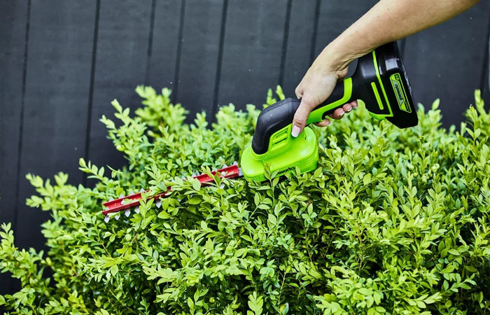 папа Так, к примеру, точный срез обеспечат садовые ножницы-кусторез GREENWORKS G24SHT с лезвием, имеющим алмазную заточку. Инструмент весит всего лишь 1 кг и работает от аккумулятора 24В. Частота разрезов в минуту довольно высокая – 2400, что позволяет справиться с обрезкой кустарников быстро и эффективно.
