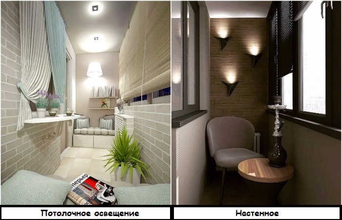 • Потолочные светильники – если в комнате натяжной потолок, в нем могут быть вмонтированы точечные споты. Если вы хотите, чтобы свет был рассеянным, выбирайте статичные споты, если же вам нужно выделять отдельные участки лоджии – поворотные. Еще один вариант – классическая люстра. Она должна быть компактной и лаконичной, чтобы не перегружать пространство.