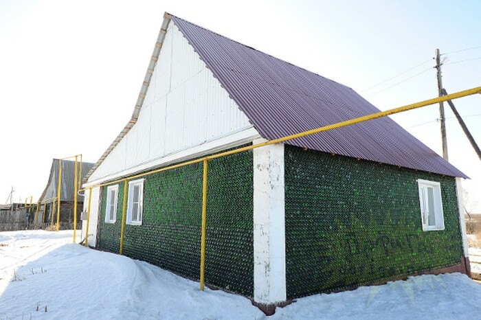 Южноуралец построил дом из бутылок от шампанского, который очень быстро стал местной достопримечательностью (пос. Теченский, Челябинская область). | Фото: planetcustodian.com.