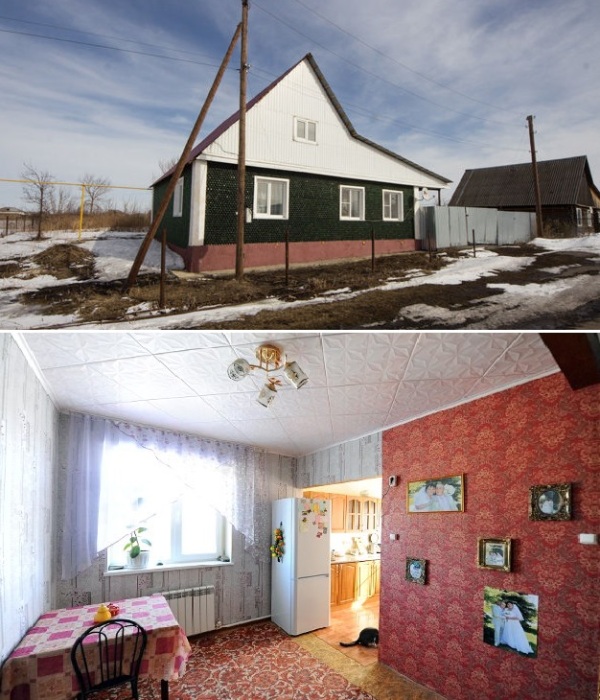 Дом из бутылок имеет вполне традиционный интерьер (пос. Теченский, Челябинская область).
