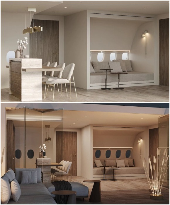 СПА в кабине пилотов станет местом полного расслабления с захватывающими видами за окном (визуализация Private Jet Villa). | Фото: en.airlinestravel.ro.
