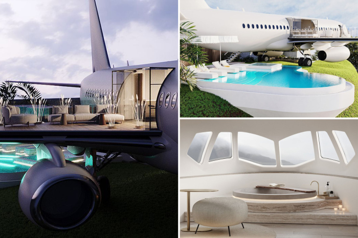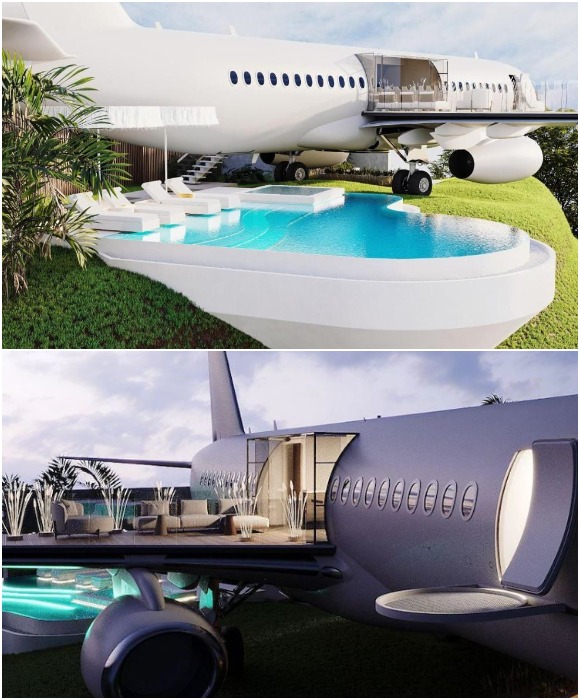 На крыле самолета имеется открытая терраса, а под ним гостей ждет видовой бассейн (рендеринг Private Jet Villa).