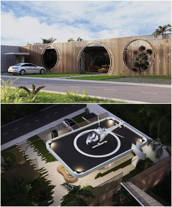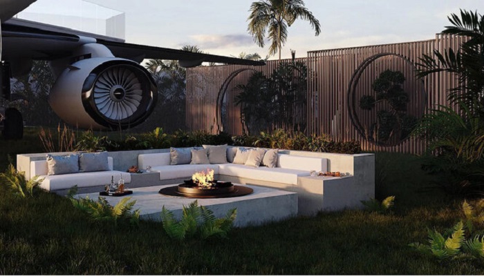 На территории виллы найдется местечко и для организации внутреннего дворика с зоной отдыха у костровой чаши (рендеринг Private Jet Villa). | Фото: businessinsider.com.