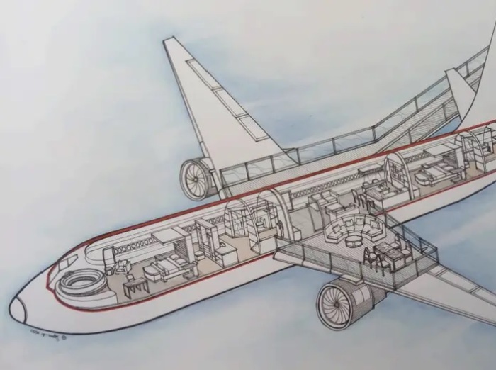 Перепланировка внутреннего пространства авиалайнера (рендеринг Private Jet Villa). | Фото: businessinsider.com.