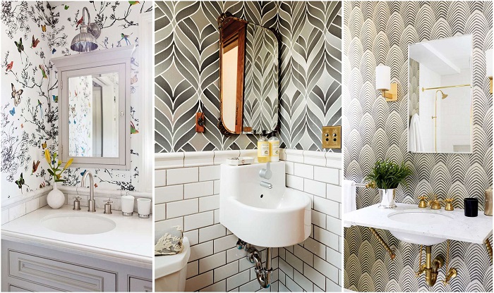 Тот, кто говорит, что обоям в ванной не место, сильно отстал от последних модных тенденций. В ассортиментах магазинов уже давно представлены влагостойкие обои самых разных дизайнов, которые прекрасно подходят для интерьера санузла. А чтобы усилить их практичность, отделку нужно размещать в сухих зонах, подальше от душа и раковины, или в туалете, если санузел раздельный.
