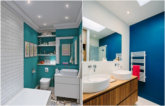 Если вы не готовы довольствоваться малым, и хотите серьезных изменений, банка с краской и кисть вам в помощь. Сама процедура займет не так много времени, особенно если ванная комната небольшая, зато интерьер существенно трансформируется. Кстати, красить можно не только стены, но и плитку. Поэтому если вам надоела цветовая гамма санузла, скорее включайте свою фантазию и творческую жилку.