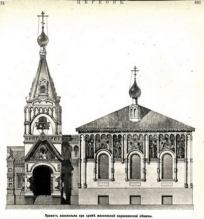 Проект обновления молельного дома, который превратили в старообрядческую церковь Покрова Пресвятой Богородицы Каринкинской (Москва). | Фото: nataganke.blogspot.com.