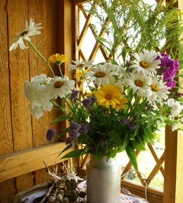 Весной и летом не составит никакого труда украсить интерьер живыми цветами. Вне зависимости от того, что именно это будет – тюльпаны, сирень, пионы, полевые цветы – они все равно мгновенно преобразят обстановку комнаты, добавят яркости и летнего настроения. Если на участке нет клумбы, и по дороге на дачу не встретилась ни одна бабушка, торгующая цветами, можно составить красивую композицию из колосьев или веточек. Создать букет получится абсолютно из любого природного материала – нужно лишь поймать вдохновение и проявить фантазию.