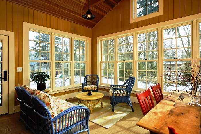Природа станет частью обстановки в том случае, если вы тщательно помоете окна, снимите шторы, уберете все, что стоит на подоконнике – тогда ничего не будет мешать ее присутствию. Также можно повесить напротив окон зеркала, чтобы они отражали солнечные лучи. Если же оконные проемы на даче маленькие, задумайтесь о панорамном остеклении. Благодаря ему в дом проникает гораздо больше света, стирается граница между постройкой, возведенной человеком, и окружающей природой, пространство становится легче и воздушнее.