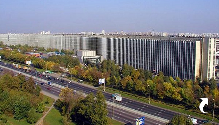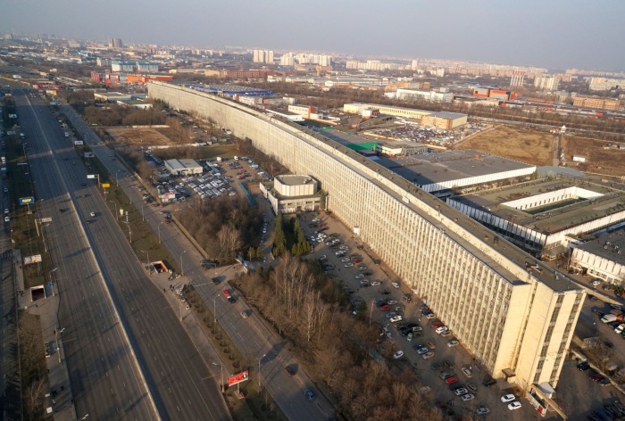Сотрудникам НИЦЭВТ, чтобы попасть из одного конца здания в другой, приходится ездить на машине или автобусе (Варшавское шоссе № 125, Москва). | Фото: mskagency.ru.
