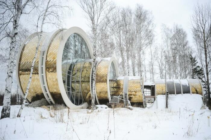 Загородный дом в поселке Становая – необычное сооружение, состоящее из цепи колец разного диаметра, соединенных между собой переходами (Свердловская область). | Фото: artyhomes.ru.