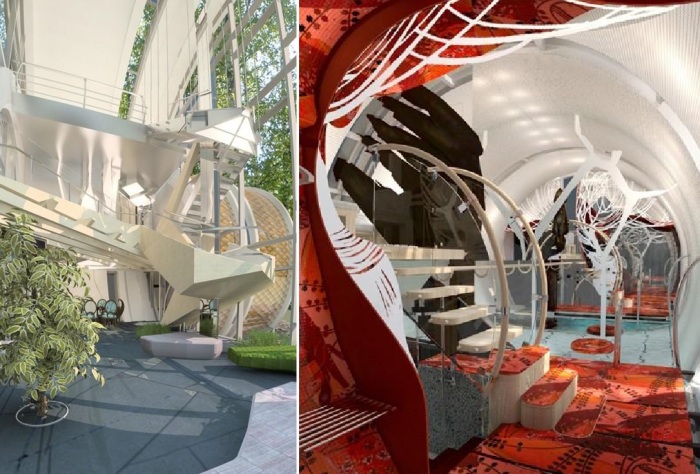 Оформление интерьера под стать эксцентричному внешнему виду («Дом-яйцо», Москва).