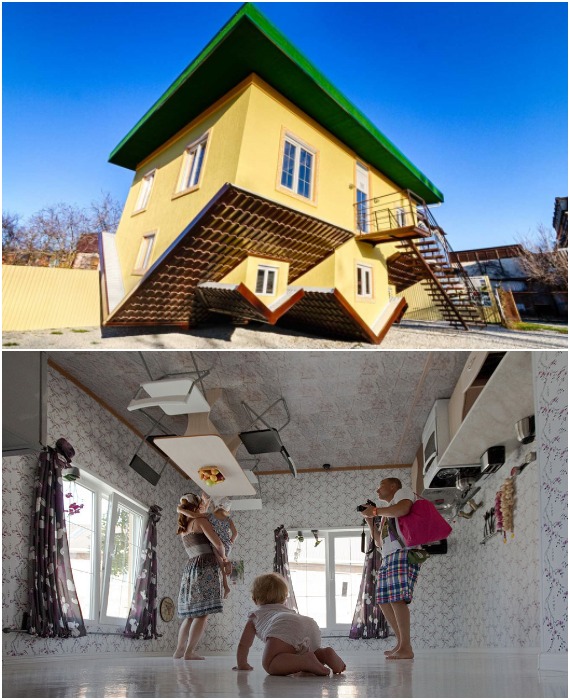 В 2013 году в Кабардинке появился причудливый дом, в котором перевернут вверх дном не только фасад, в нем мебель прибита к потолку (Геленджик, Краснодарский край).