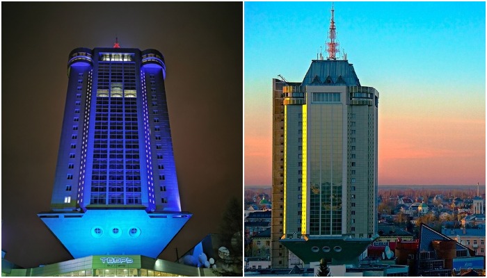 Здание, названное в народе «Рюмка», поменяло не только функционал, но и приобрело башню (Бизнес-центр «Тверь»).