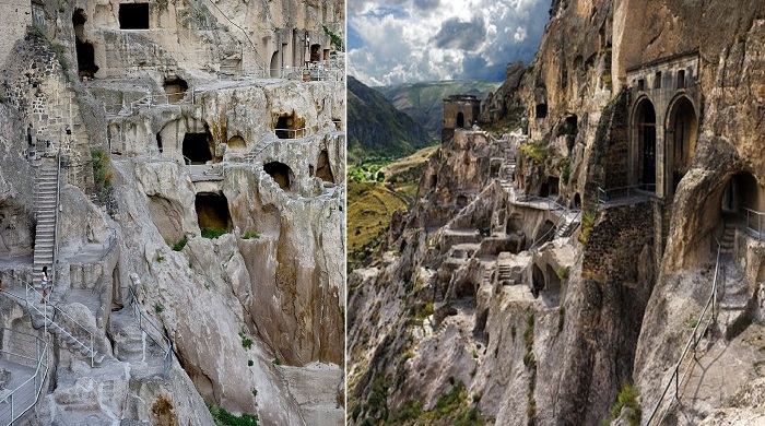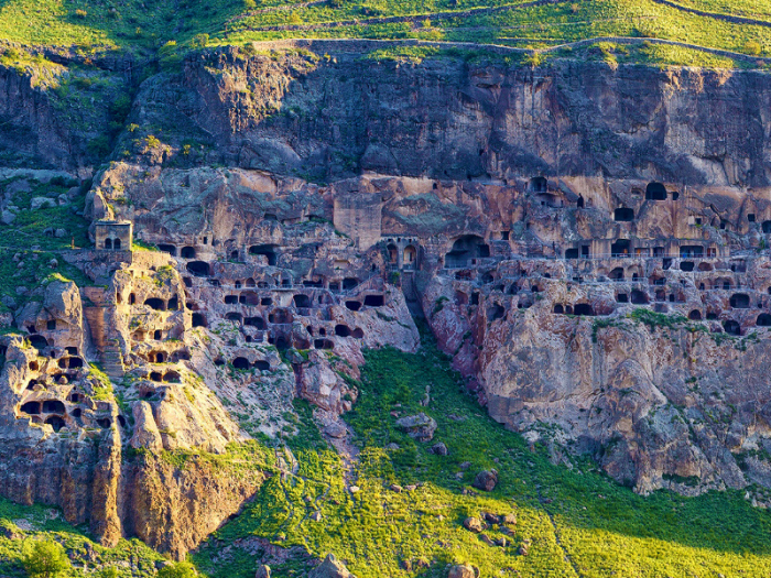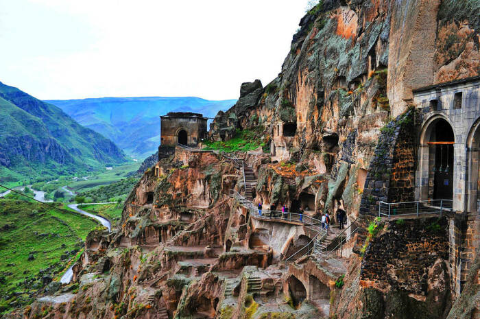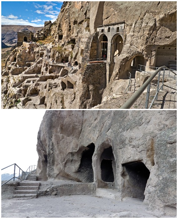 За несколько десятилетий в скале построили целый город с пограничным гарнизоном, царской резиденцией и монастырем (Вардзиа, Грузия).