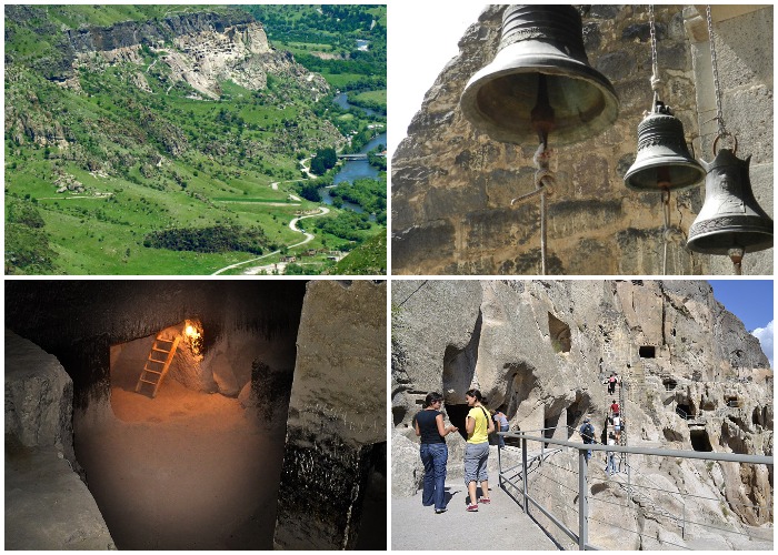 После масштабных восстановительных работ крепость превратили в монастырь и пристроили колокольню, выходящую за пределы скалы (Вардзиа, Грузия).