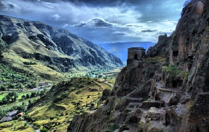Город-крепость, высеченный в скалах на уровне 1,3 тыс. метров над уровнем моря, возвышается над долиной реки Куры (Вардзиа, Грузия). | Фото: travel-mania.org.