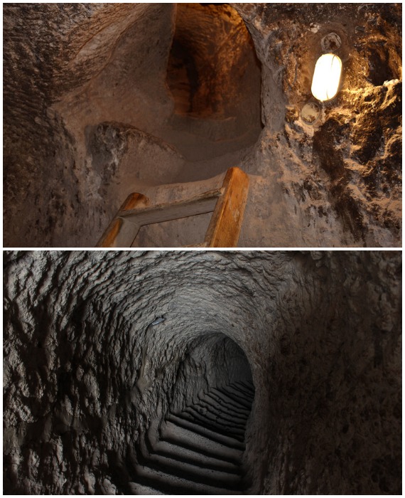 Лабиринты лестниц, переходов, тайных ходов и галерей пронизывают пещерный город Вардзиа (Грузия).