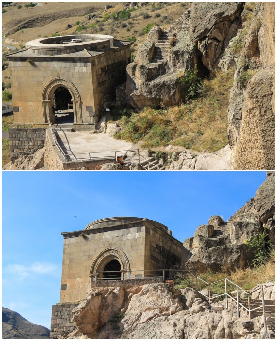 Авторы Novate.ru хотели бы отметить, что сейчас пещерная святыня Вардзиа считается действующим мужским монастырем, хотя того размаха, которого достиг он в прежние века нет. Зато в его истории случились и хорошие события. В 2004 году Министерство культуры, охраны памятников и спорта Грузии инициировало проведение комплексных мероприятий, нацеленных на консервацию и реставрацию исторического объекта. Были проведены укрепительные работы, восстановили отводящие системы, очистили лицевую и верхние поверхности скалы, заполнили специальным раствором особо опасные трещины, чтобы остановить процесс их расширения/разрушения, установили множество подпорных конструкций, удерживающих камни, отремонтировали святыни и вспомогательные помещения.