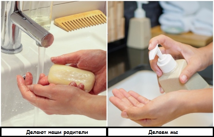 Наши родители предпочитают твердое мыло, а мы - жидкое