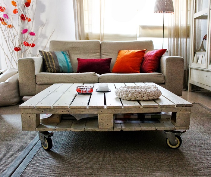 Журнальный столик из поддонов на колесиках. / Фото: pro-dachnikov.com