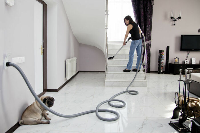 Первые центральные пылесосы появились еще в конце XIX века в европейских гостиницах. Встроенный пылесос – это специальная вакуумная установка, которая заменяет собой обычный пылесос. Работает почти бесшумно, энергии потребляет немного, а количество мелкого мусора и пыли в помещении сокращает в разы. При этом не нужно таскать за собой надоедливый ящик на колесиках. В частном доме можно установить центральный модуль встроенного пылесоса рядом с мусоркой, чтобы не сильно заморачиваться на очистку. Само собой, ответвление встроенного пылесоса придется сделать в каждую из комнат.