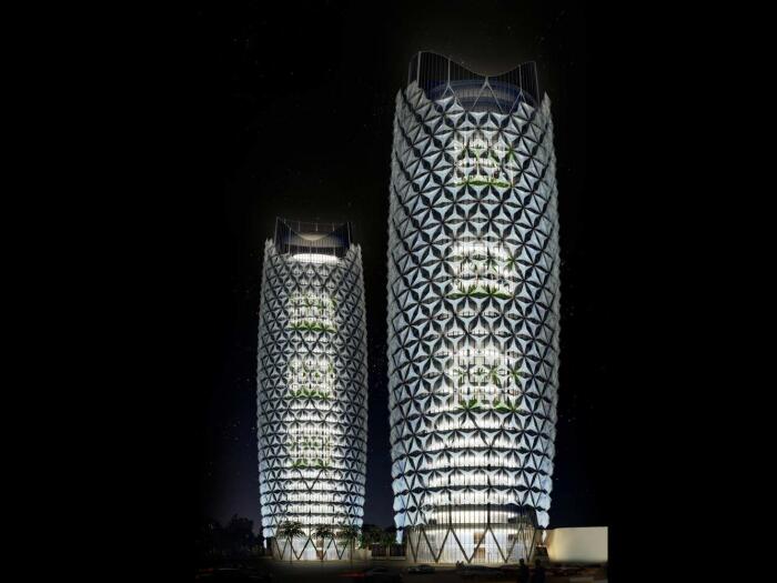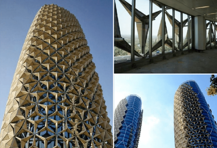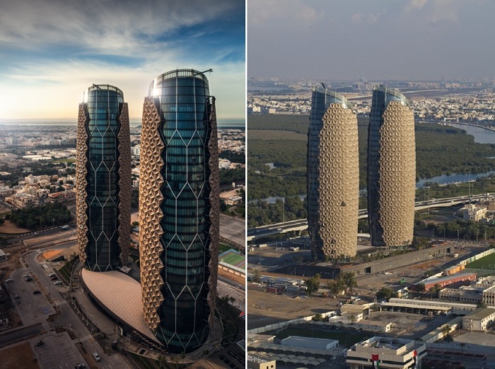 Это подтверждает пример строительства двух небоскребов-близнецов, разработанных британскими специалистами архитектурной компании Aedas Architects. Речь идет о комплексе под названием Al Bahar Towers (Башни Аль Бахар), украшающем горизонт Абу-Даби. В проектном задании было оговорено строительство двух 25-этажных башен высотой 145 метров, которые бы стали выдающейся достопримечательностью, обеспечивающей современный дизайн с использованием самых современных технологий в сочетании с учетом архитектурного наследия региона, и отражали статус организации заказчиков.