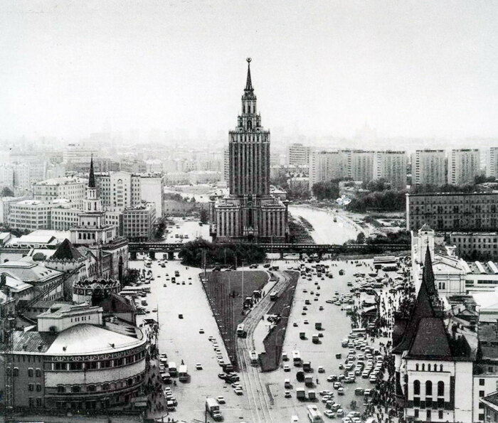 Жилая высотка на Кудринской площади предназначалась для советской элиты (Москва). | Фото: moscowchronology.ru.