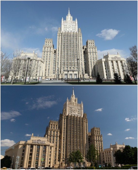 Проектом не был предусмотрен шпиль, его установили по настоянию Сталина (МИД, Москва). | Фото: architip.livejournal.com.