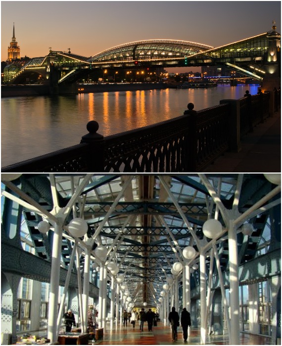 Пешеходный мост Богдана Хмельницкого – туристический объект, позволяющий прогуляться до Садового Кольца в сторону станции метро Парк Культуры без особой привязки к транспорту. | Фото: puteshestvovat.com.